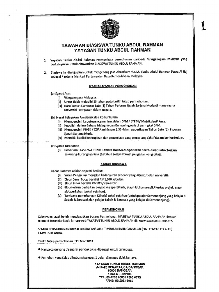 Tawaran Biasiswa Tunku Abdul Rahman Pdf